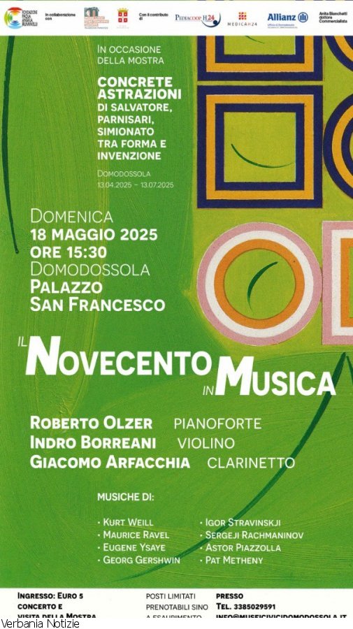 Domenica 18 maggio “Il Novecento in musica” a Domodossola. Nell'ambito della mostra “Concrete astrazioni”, in corso a Palazzo San Francesco di Domodossola, Fondazione Paola Angela Ruminelli organizza un concerto inedito.